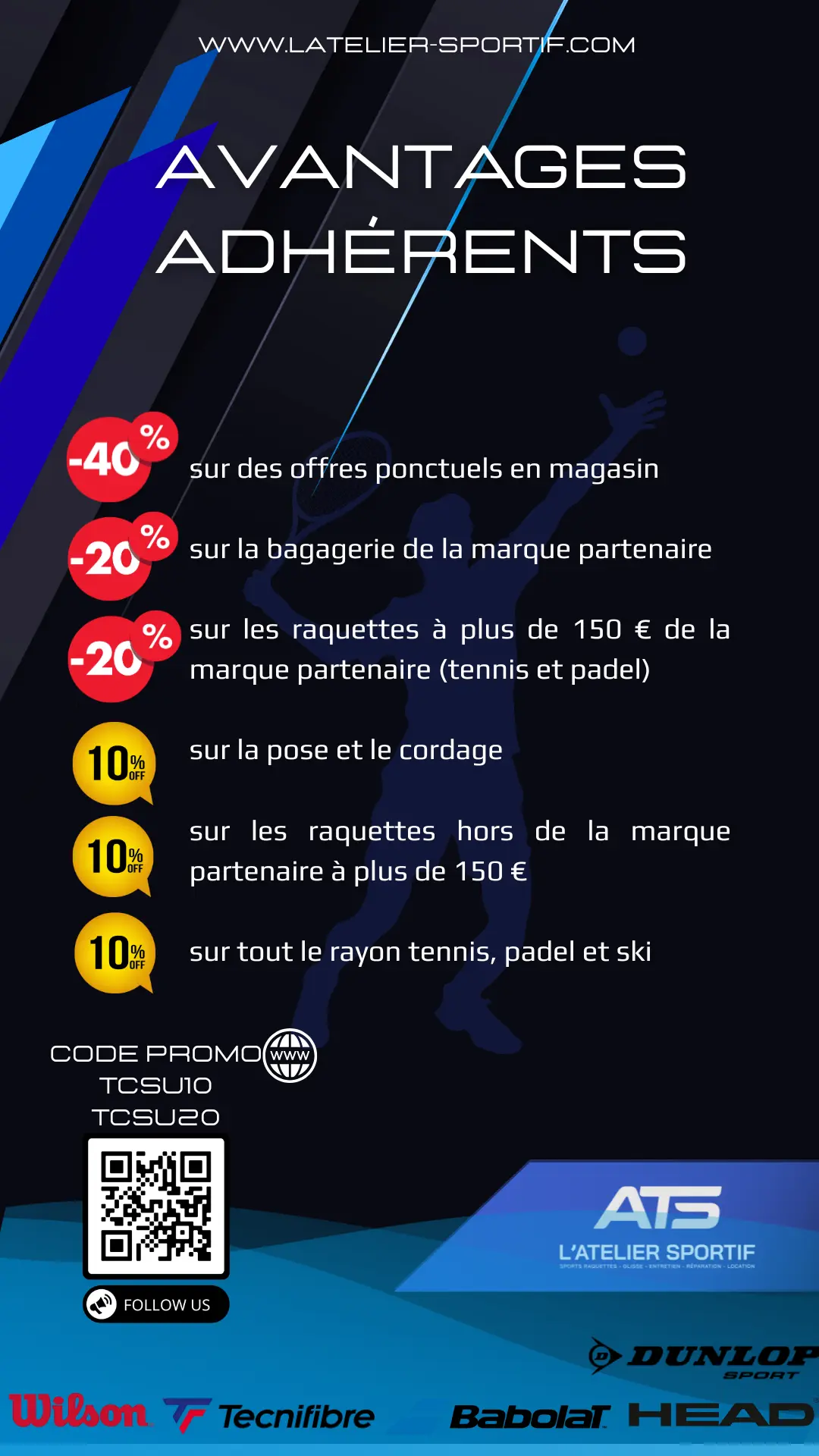 Ensemble, nous visons à promouvoir le tennis et à offrir à nos membres un accès privilégié à des équipements de qualité. L'Atelier Sportif nous fournit des conseils d'experts et des produits adaptés aux besoins de nos joueurs.
